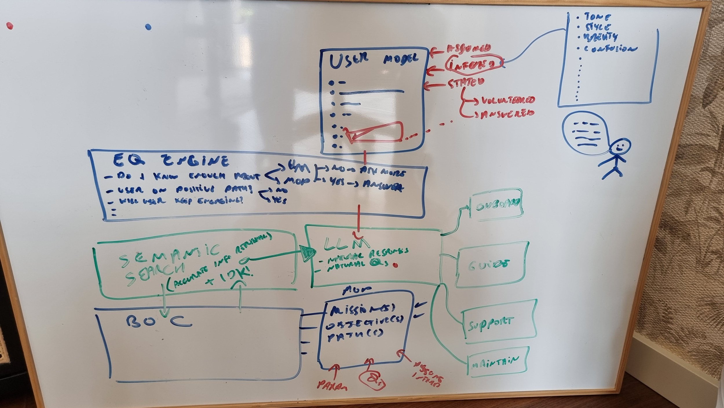 EQ engine: This is a fancy name for a set of logic and heuristics that takes as the input the next milestone the user needs to achieve, the user state, the general context and creates the custom prompts that feed to the llm to handle the conversation to approach the next milestone. I believe In the gaming world it is called a quest system or mission planner.